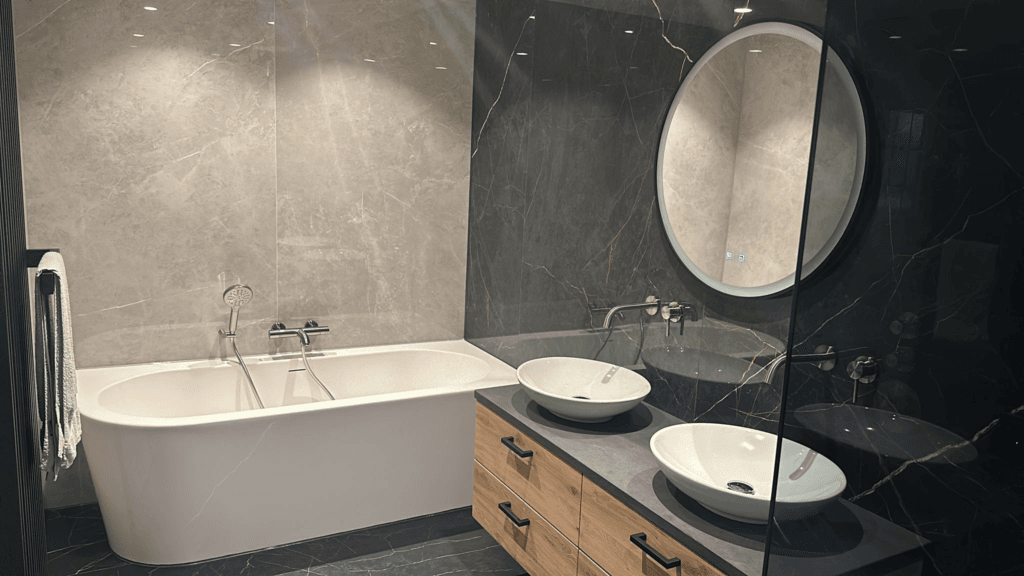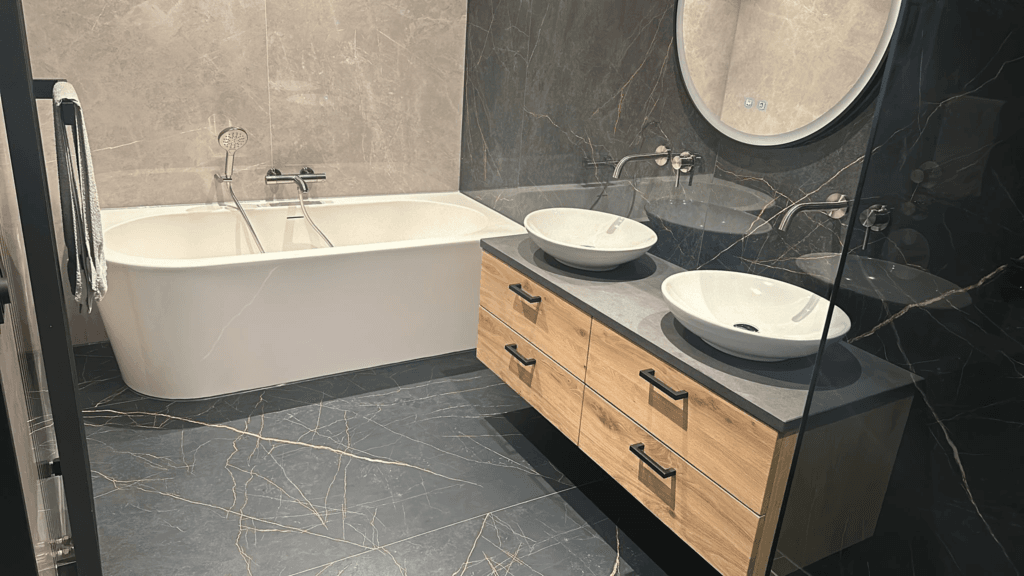 Wil je meer informatie over dit project? Bij van Veggel Tegels staat persoonlijk contact voorop. De adviezen die wij geven, zijn gebaseerd op onze eigen ervaring. Zo kunnen we vakkundig en deskundig advies geven waar een klant echt wat aan heeft. We werken met een compact team van vijf personen waardoor de lijntjes prettig kort zijn. We zijn altijd makkelijk bereikbaar zodat we snel kunnen inspelen op de vragen van onze klanten. Zien we u binnenkort in de showroom? Maak een afspraak!